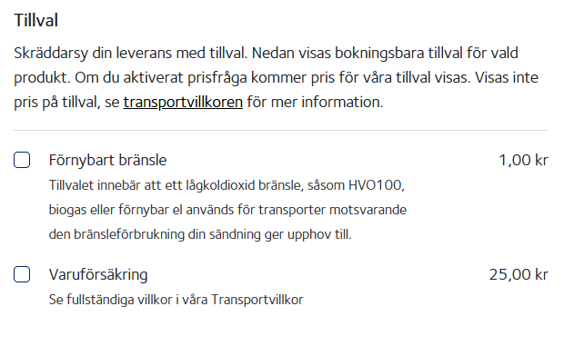 Du kan även lägga till eventuella tillval, så som varuförsäkring.