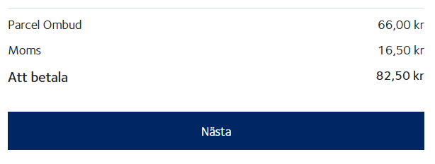 Fraktkostnaden är synlig längst ner i högra hörnet. Tryck "Nästa" för att gå vidare till betalning!