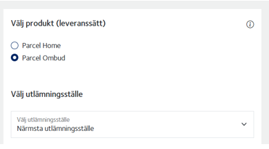 Välj sedan hur du vill att leveransen ska ske (ombud eller till leveransadress).